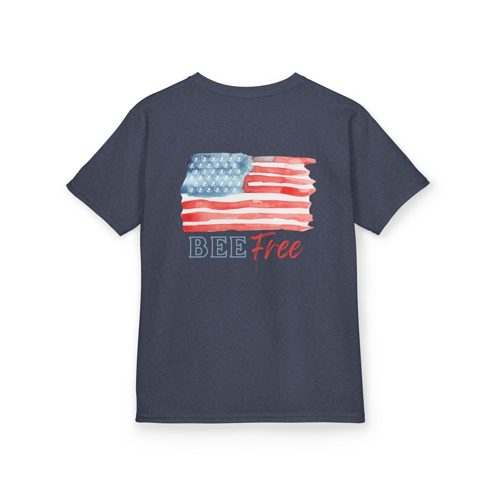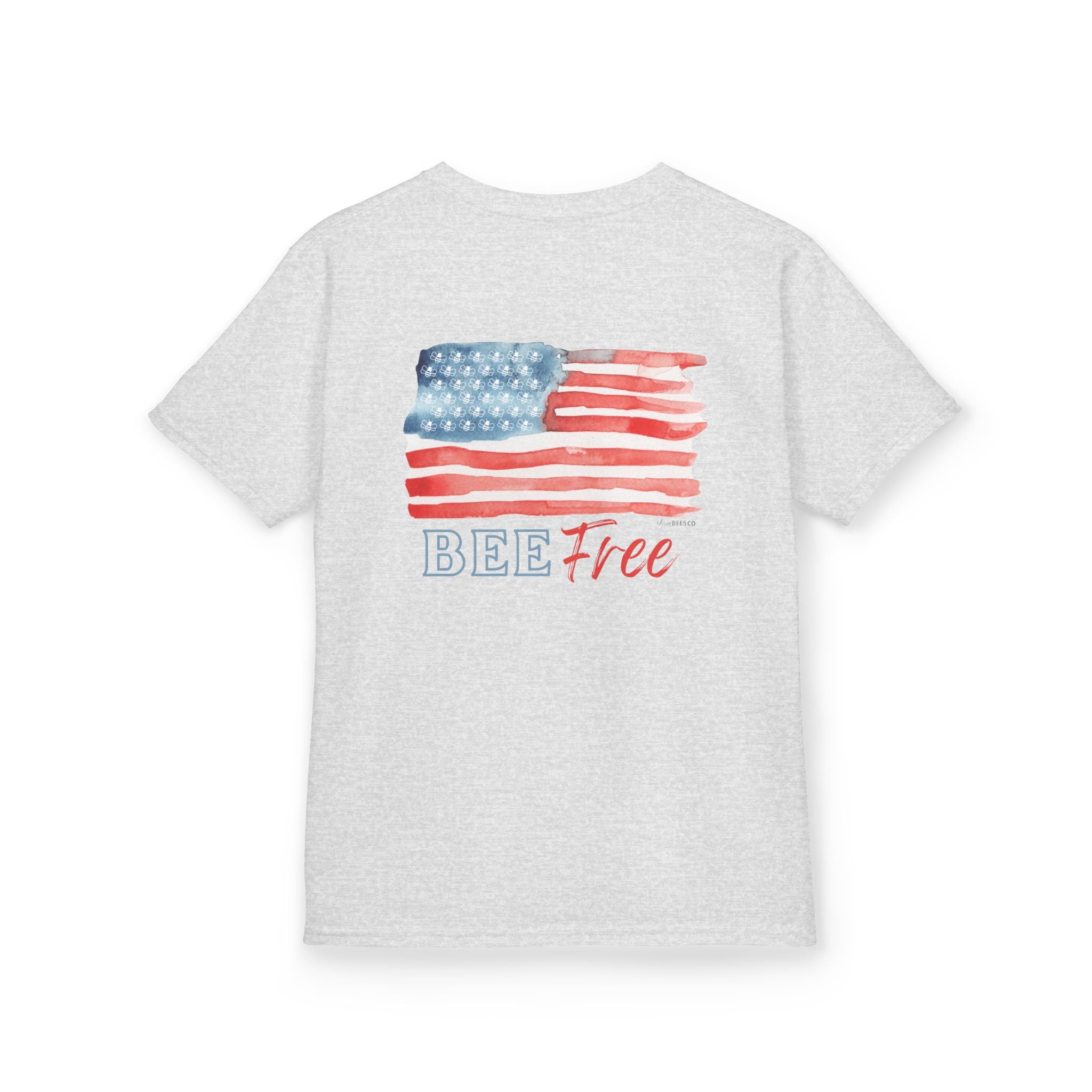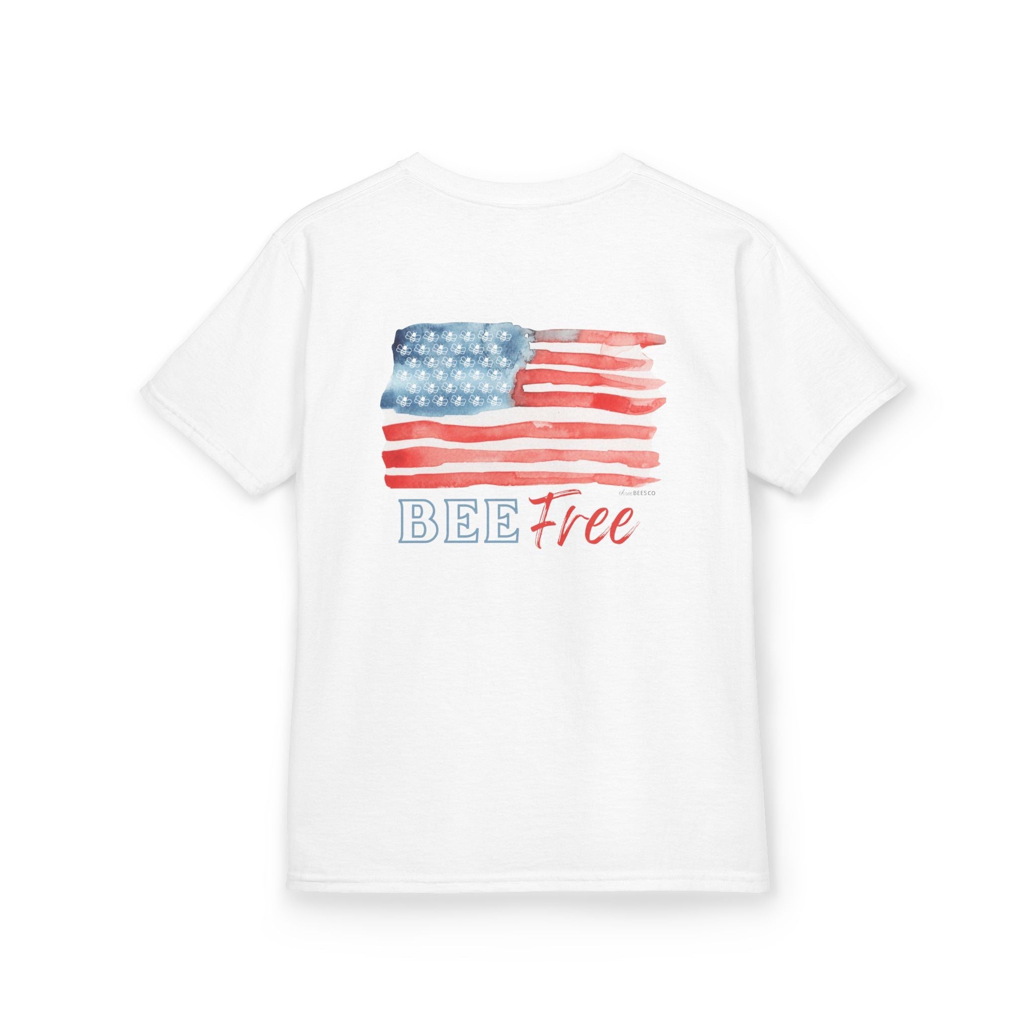Bee Free American Flag with Bee Stars Short Sleeve Youth Unisex Hive Tee