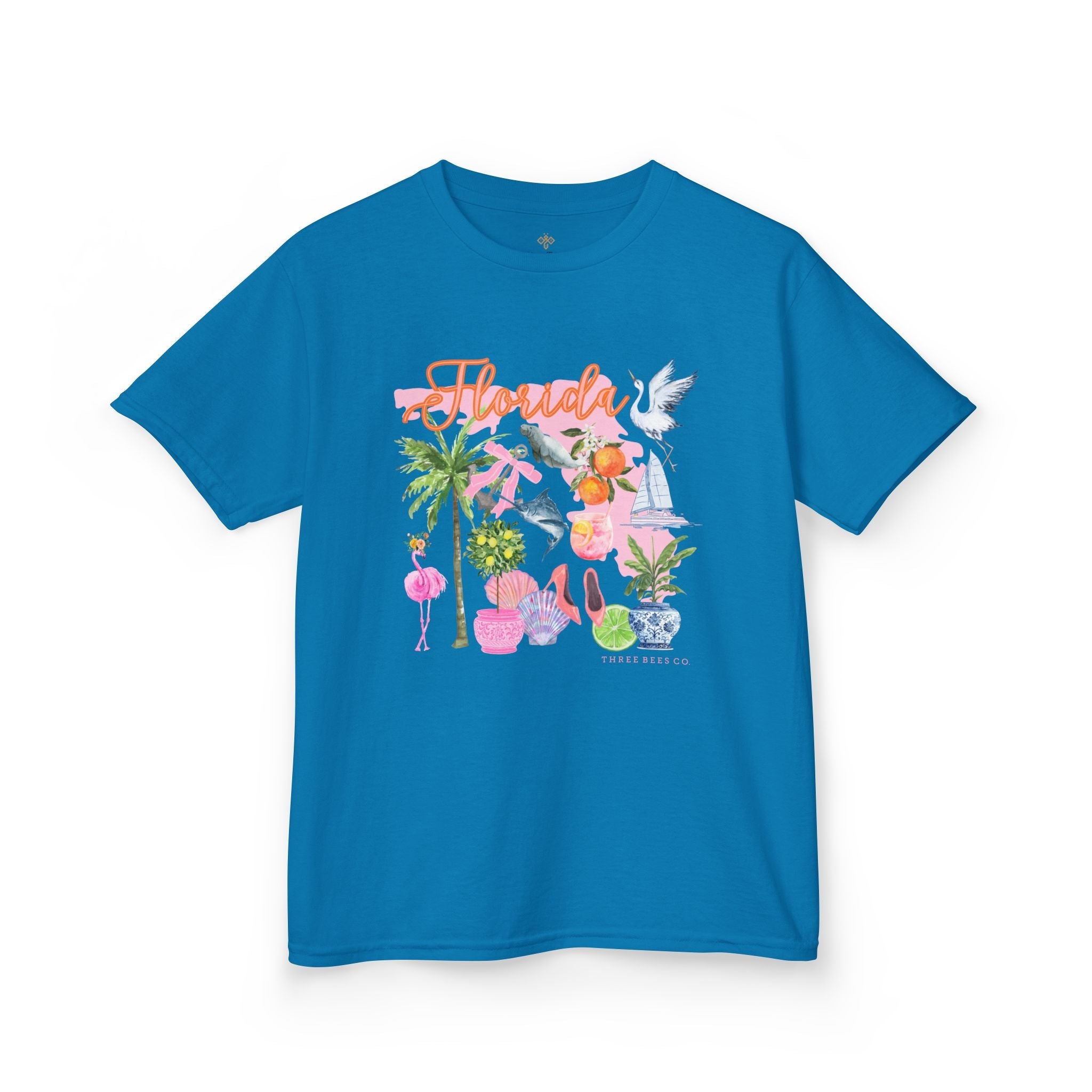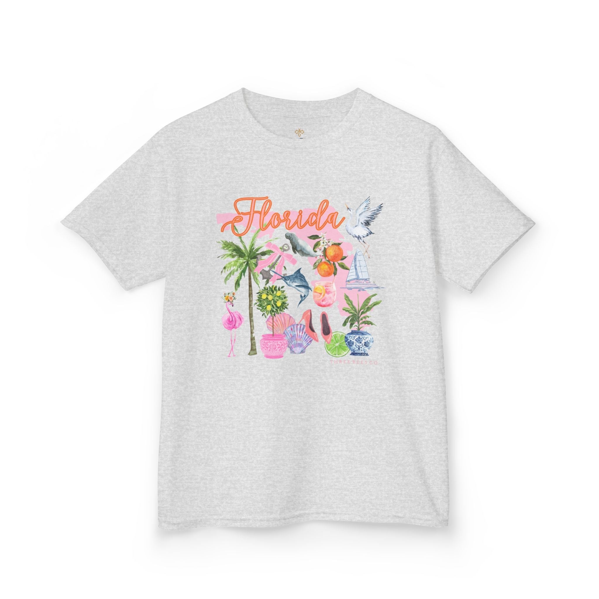 Bee Sunny Florida Floral Girls Short Sleeve Heavy Cotton Gildan Youth Hive Tee