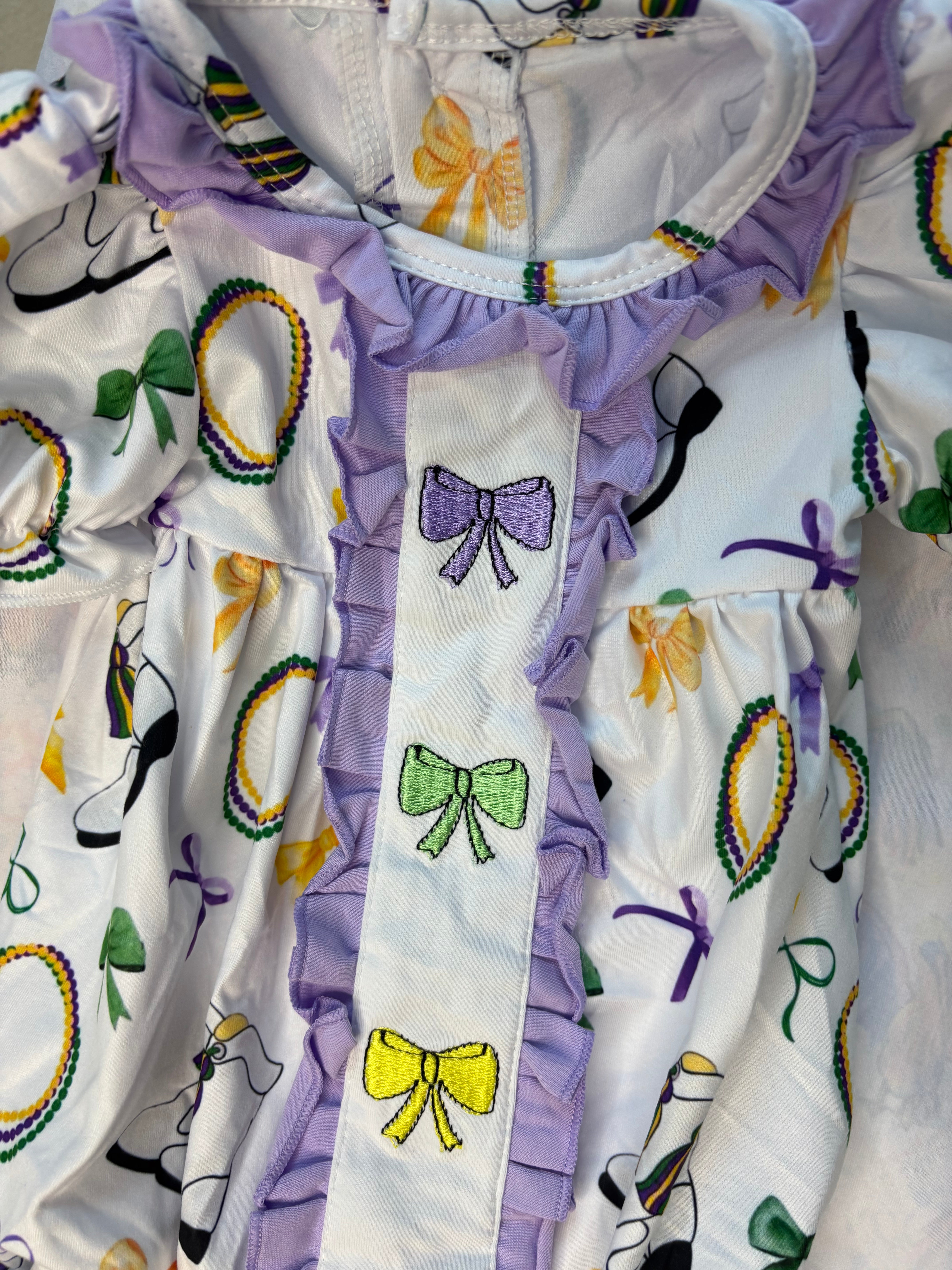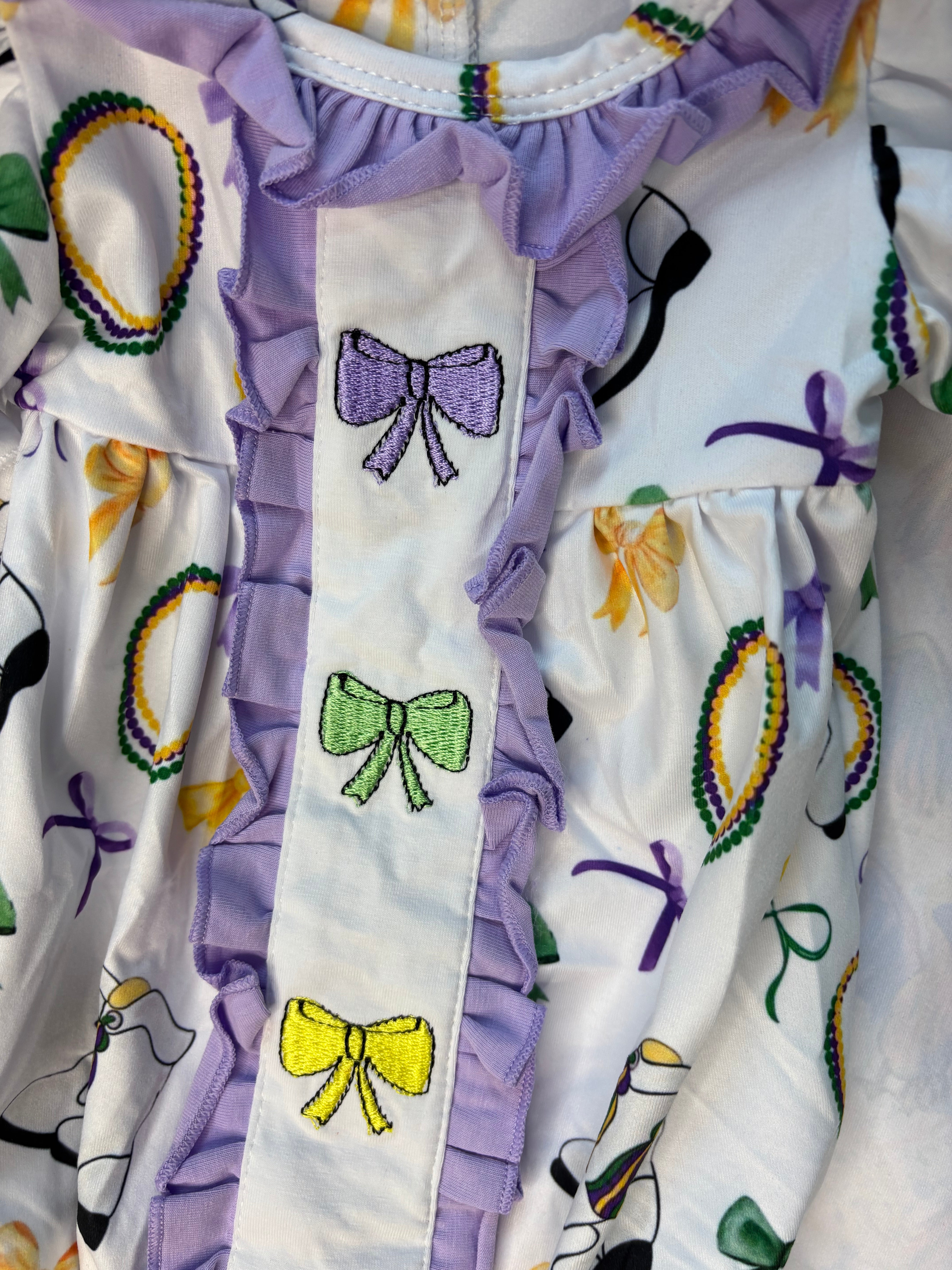 Get your little one ready for a day of play in our Boots and Bows Embroidered Bubble! Featuring marching boots and adorable embroidered bows, this cute bubble is perfect for easy changing with convenient snap closures.