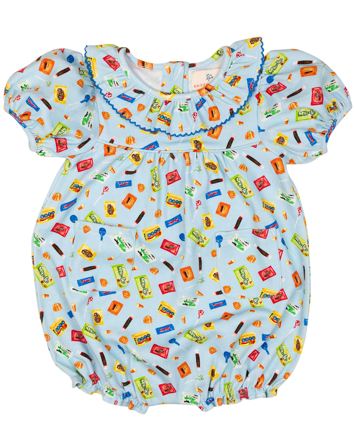 A little sweetness goes a long way in the Candy Favorite Halloween Girl Bubble! This adorable outfit features puff sleeves, playful pocket details, and a vibrant candy-themed design. The perfect mix of comfy and cute, it’s an ideal choice for pumpkin patch adventures and festive family outings.