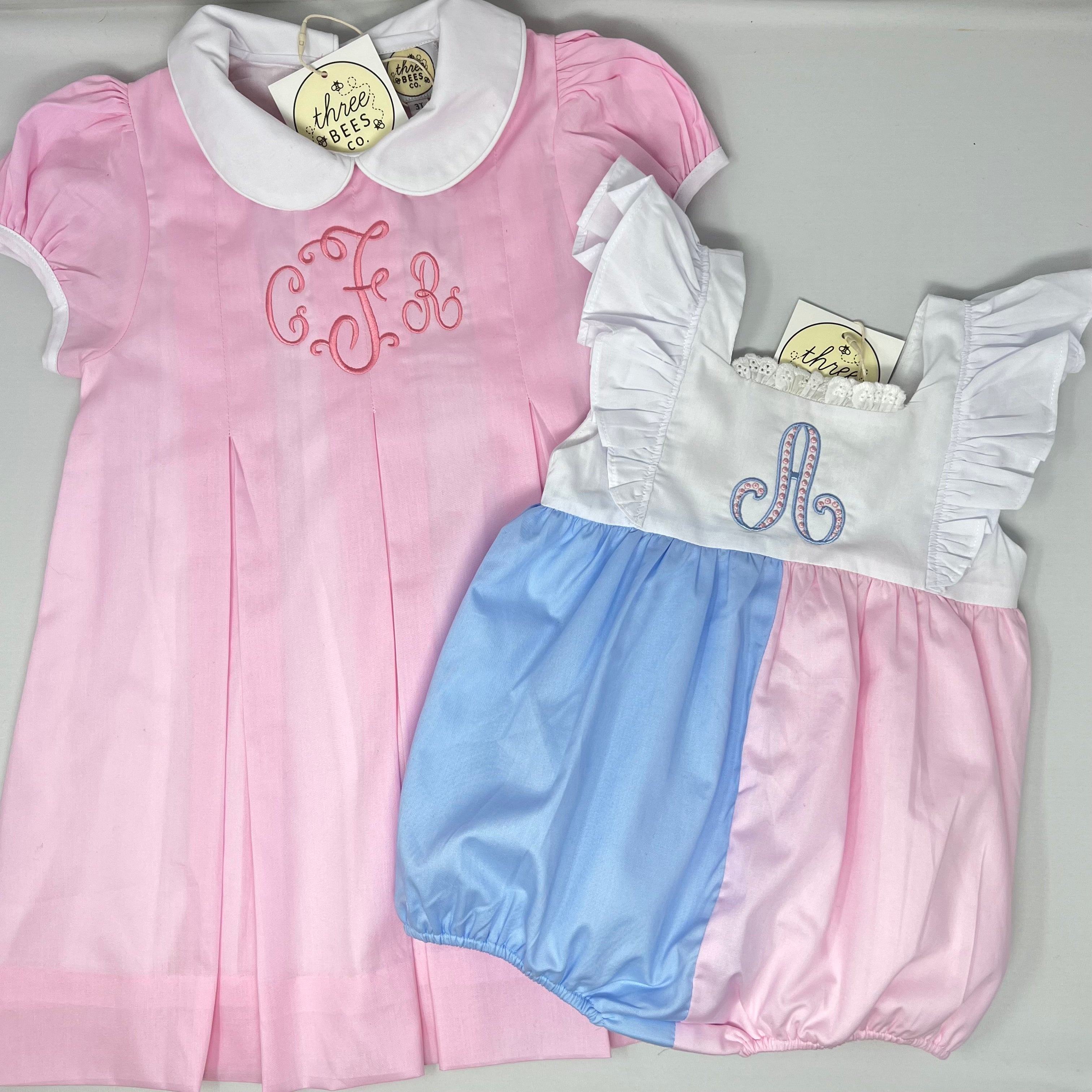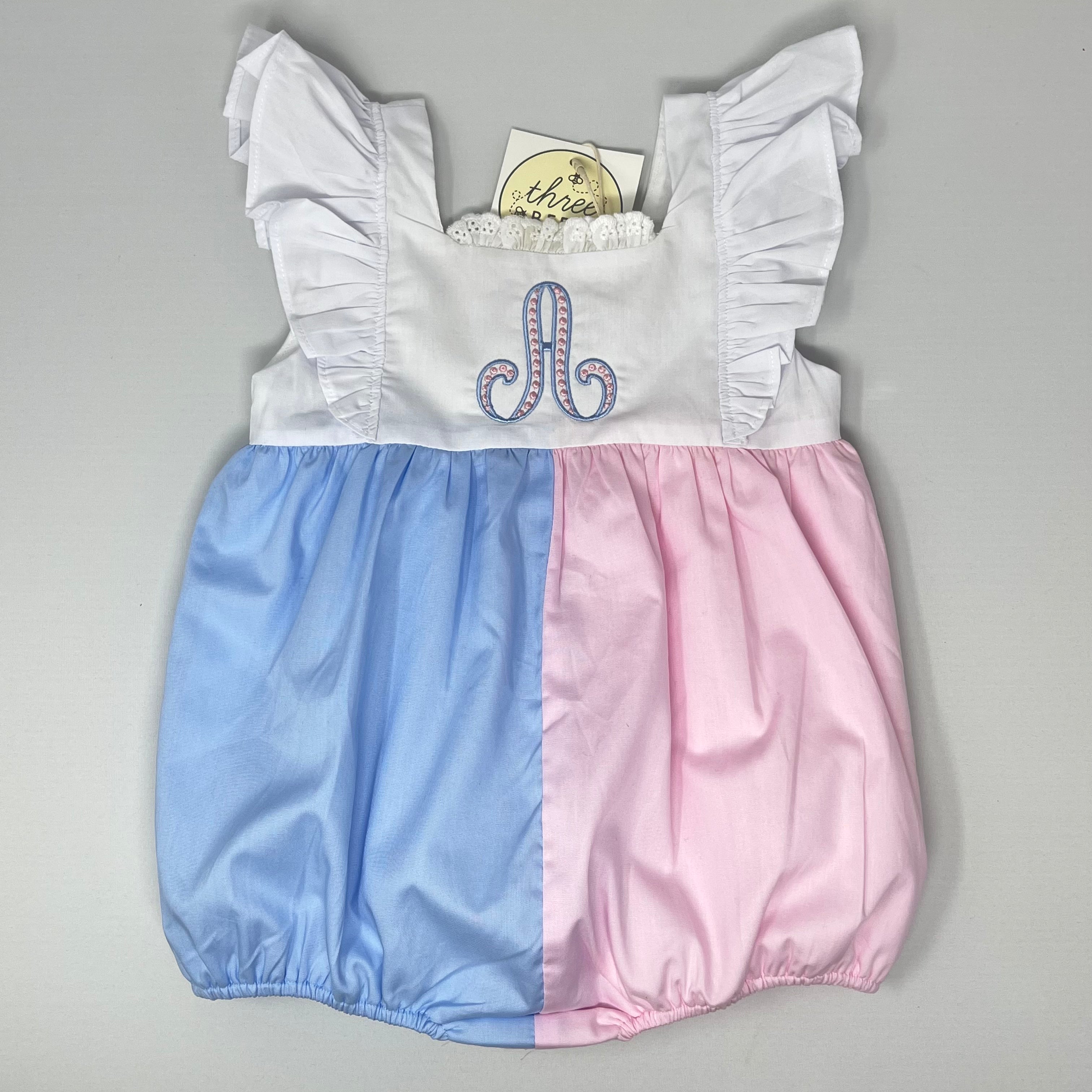 This gorgeous lined, ruffle bubble is perfect as is or just the right template for a sweet custom design. This bubble also has a coordinating sister match dress, available in pink or blue.