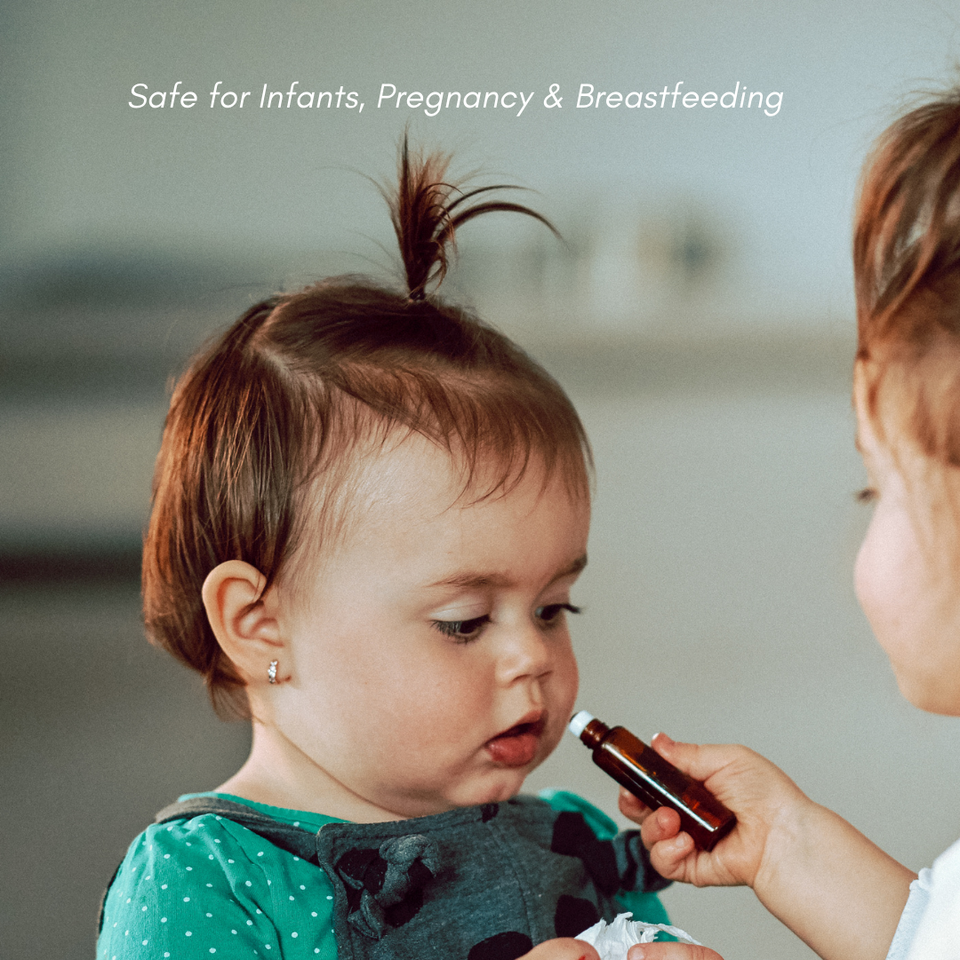 This natural blend of therapeutic grade organic essential oils (eucalyptus radiata) is specifically designed to alleviate symptoms of cold and flu. Without the use of menthol or peppermint, this product is safe for breastfeeding women and does not pose any respiratory issues for infants and children.