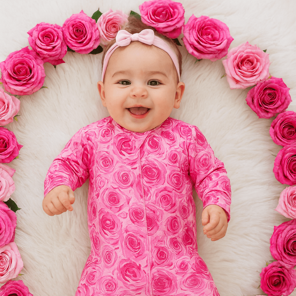 Ask and you shall receive. This yummy footie is equipped with a smooth 2-way zipper, silicone grips on the foot pads and fold-over handcuffs. Plus our silky-soft fabric hugs in all the right places to show off those baby curves.