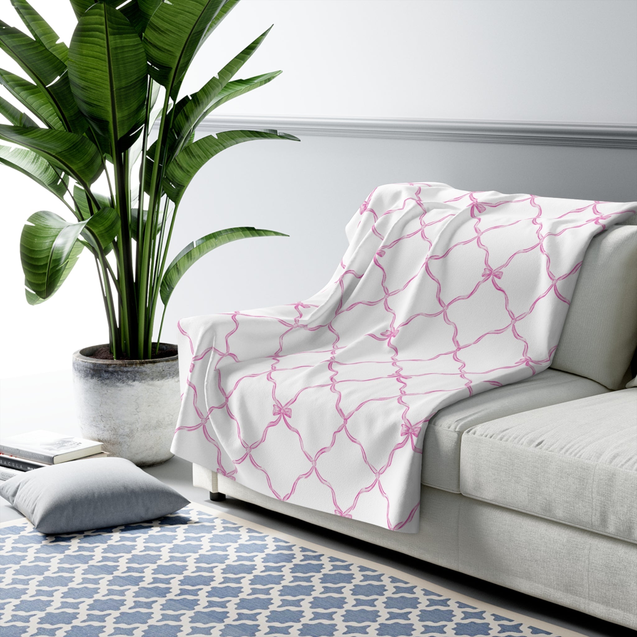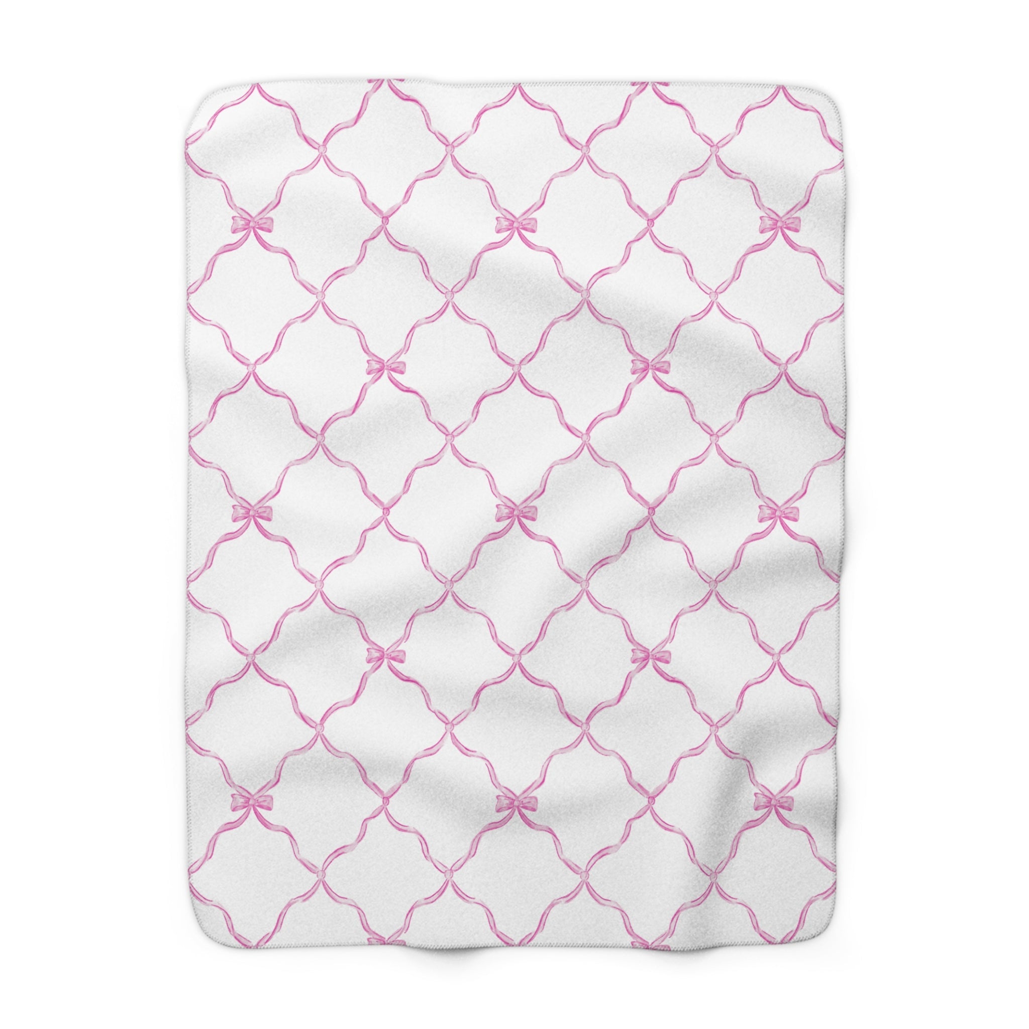 Three Bees Trellis Bow Cozy Sherpa Fleece Blanket - Bubblegum Pink