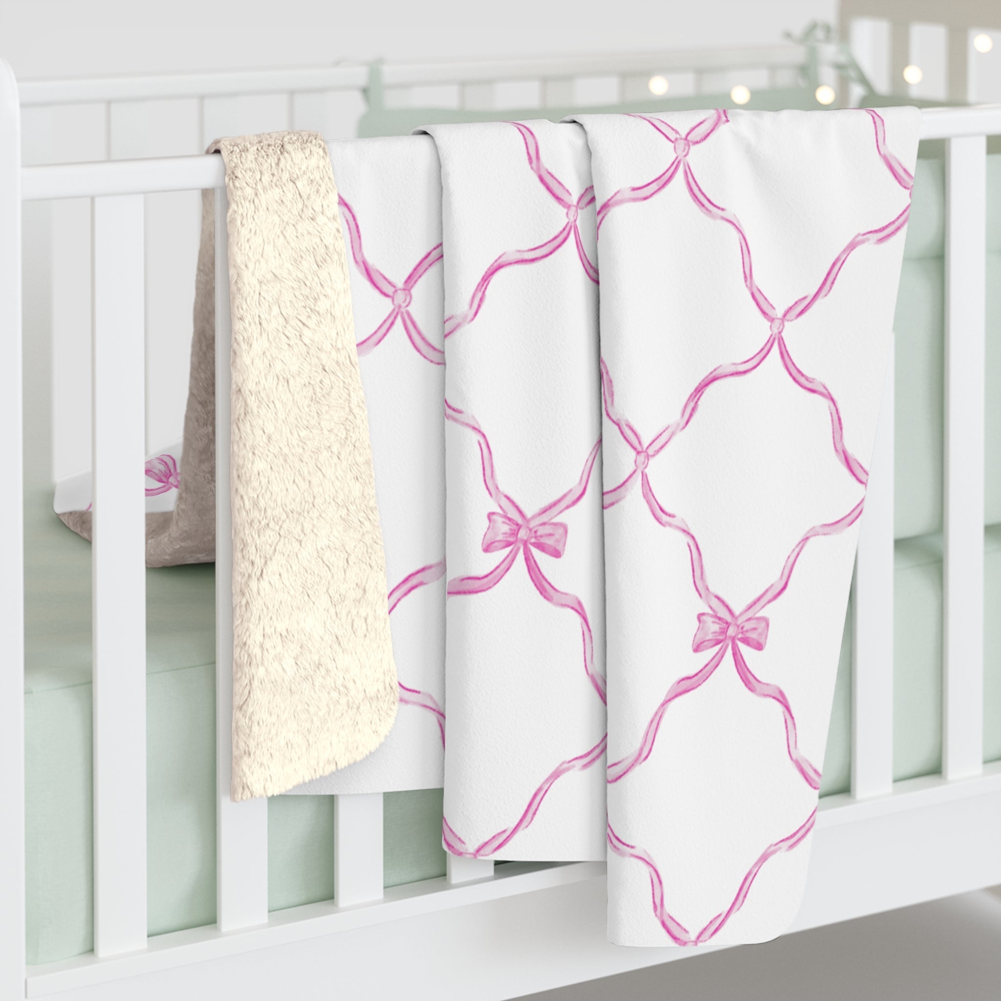 Wrap your little one—or yourself—in comfort with our Cozy Sherpa Blanket, featuring our signature trellis bow design. Soft, warm, and oh-so-sweet, it’s perfect for nursery snuggles, movie nights, or adding a charming touch to any room. Whether draped on a rocker, tucked into a toddler bed, or gifted to someone special, this blanket is made to bring warmth and joy to every corner of your home.